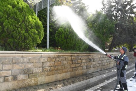 Bakı Şəhər İcra Hakimiyyəti Kommunal təsərrüfat xidmətlərinin texnikası səhər saatlarından başlayaraq bitki və canlılara zərər verməyən yuyucu maddələrlə əsas küçə və prospektlərin yuyulmasını aparıb. Bu zaman həm də məhəllədaxili və ara yollar da yuyulub.
