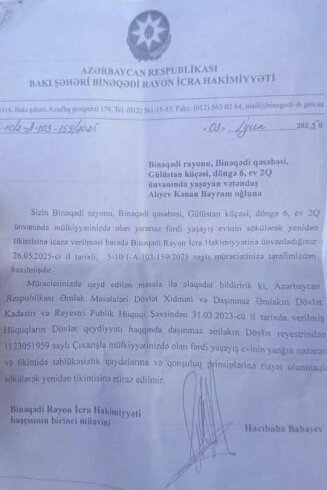 Binəqədi rayonunda fərdi yaşayış evi obyektə çevrilib - Hacıbaba Babayevin saxta arayışı ilə...