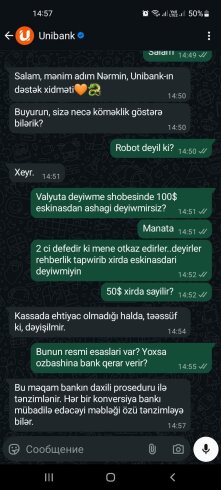 "Unibank" filiallarında 100 dollardan aşağı əskinazların xırdalanmasına icazə verilmir.