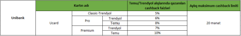 “Temu” və “Trendyol” kimi populyar e-ticarət platformaları artıq təkcə münasib qiymətlər və geniş məhsul çeşidi ilə deyil, həm də bu cür cashback imkanları ilə fərqlənirlər. Doğru bank kartı seçimi ilə istifadəçilər bu platformalarda etdikləri alış-verişdən əlavə qazanc əldə edə bilərlər.